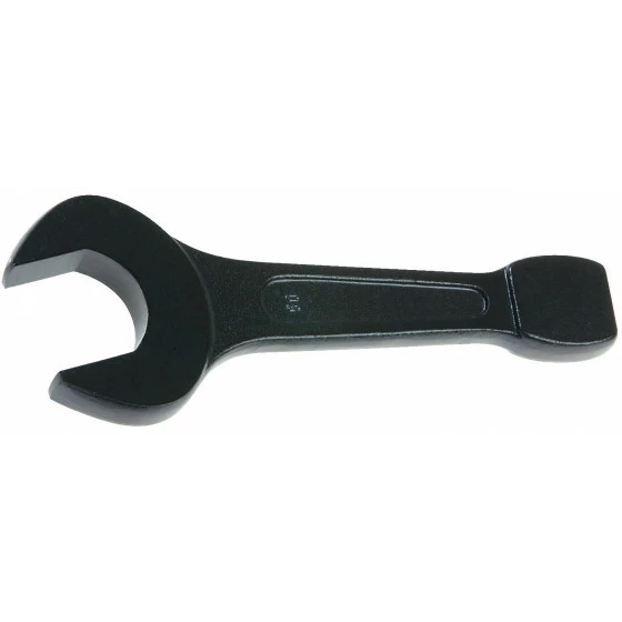 Zone de frappe pour une puissance de serrage/desserrage accrue, clés grande puissance. Dimensions élevées, adaptée à l’industrie. Acier : acier au chrome 4Cr1. Trempe sélective sur les parties travaillantes (fourche). Duretés : 34/4HRC (S5mm). Finition phosphatation noire. CONFORMITÉ NORME : DIN 475 / DIN 133.