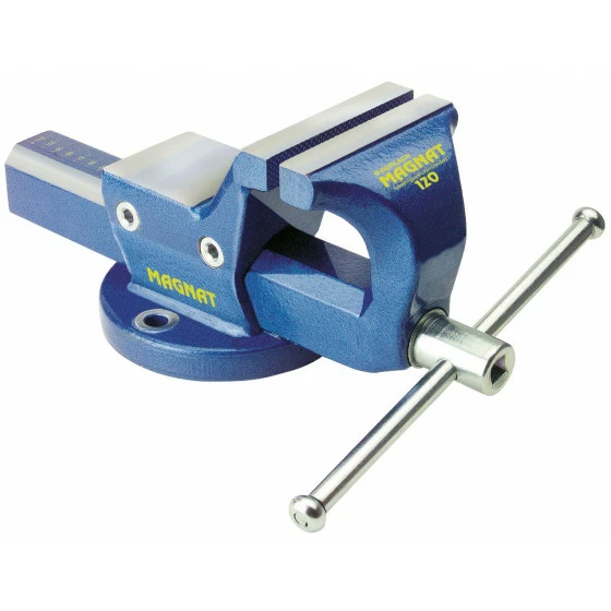 Étau de qualité Magnat, en acier forgé, trempé, incassable. Mors fraisés et trempés (52-58 HRC). Dispositif de réglage. Pied forgé. Forme ronde, ne blesse pas. Ouverture extra grande avec une glissière ajustable. Echelle de mesure. Grande enclume trempée (5-56 HRC) pour travaux de dressage et de refoulement. Mors avec dispositif des fixations de mordaches orientables supplémentaires (dès 12 mm). Deux systèmes de serrage : le système MDS exclusif qui permet d’assurer le serrage de l’étau avec un cliquet de carré 1/2”. Ainsi, vous pouvez serrer aisément des pièces encombrantes et dans des positions difficiles. Le serrage classique avec une poignée coulissante amovible.