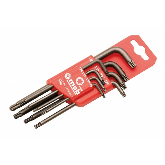 Etui de 8 clés Torx sphériques T9/T1/T15/T2/T25/T27/T3/T4. QUALITÉ : Acier Chrome-Vanadium : qualité professionnelle garantie NF ISO 2936. Disponible en tête sphérique pour travailler avec une inclinaison de 3° pour favoriser l’accessibilité. Etui plastique : se transforme en poignée et permet d’exercer des serrages plus puissants. Identification claire des dimensions grâce au marquage.